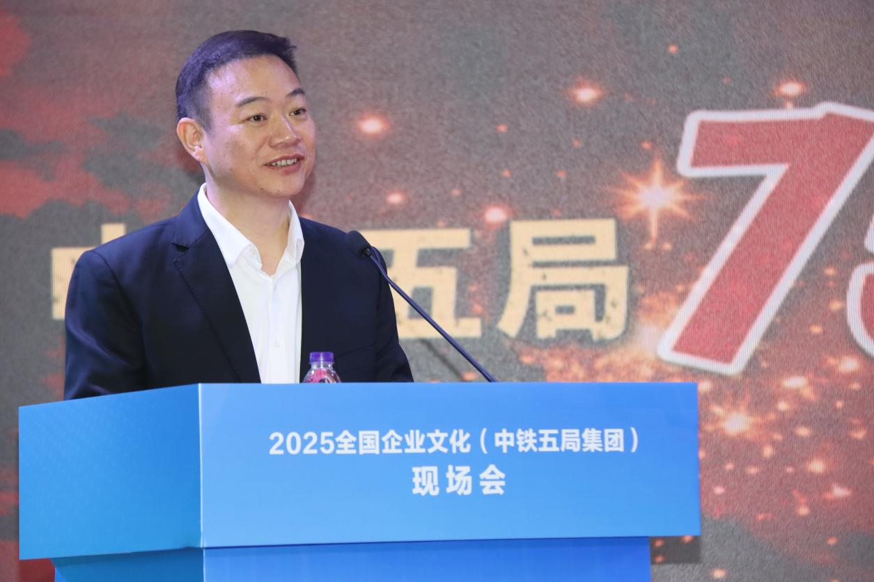 蒲青松作了题为《擎旗开路守初心 文化铸魂启新程 中铁五局75载笃行不怠诠释永远的开路先锋》的企业文化主题报告。他从“源起、成长、升华”三个阶段系统阐释了中铁五局75年来的发展历程和“开路先锋”文化的形成脉络以及取得的重大成果。他指出,中铁五局始终坚持“文化与管理融合、精神与实践同步”,将开路先锋文化深度融入企业党建与生产经营,通过以文化促党建,筑牢了根魂优势;以文化聚合力,激活了团队动能;以文化助发展,提升了核心竞争力;以文化践责任,彰显了央企担当。他表示,中铁五局将坚持守正创新,传承红色基因,拓展文化实践路径,在服务国家战略与高质量发展中持续丰富“开路先锋”文化的时代内涵,切实把“开路先锋”文化转化为干事创业的强大动力,为加快建设世界一流企业、实现中华民族伟大复兴的中国梦贡献五局力量。